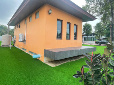หญ้าเทียมที่ได้ทำการปูไปรอบบ้านนั้น ก็มีประโยชน์ทำให้สามารถใช้พื้นที่รอบๆบ้านได้ทุกจุด จะจัดงานปาร์ตี้หรือ